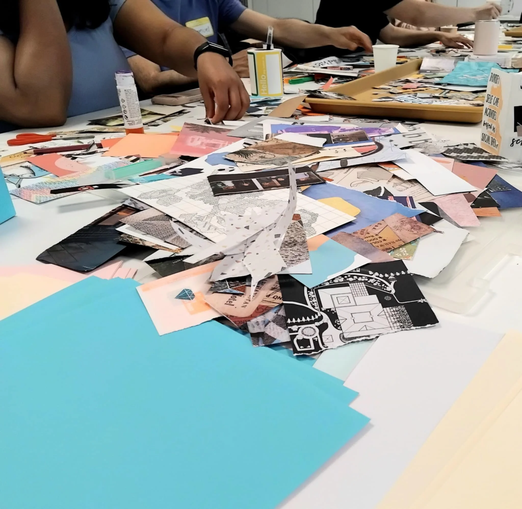We gathered together a collection of self-care postcards to display as part of Art in Shops for SAW, and our Friday Freedom to Create sessions swelled in number. We dabbed watercolours onto textured paper, tore paper strips to build layered landscapes and took inspiration from Jackie of Treehuggery to create collaged paper people.