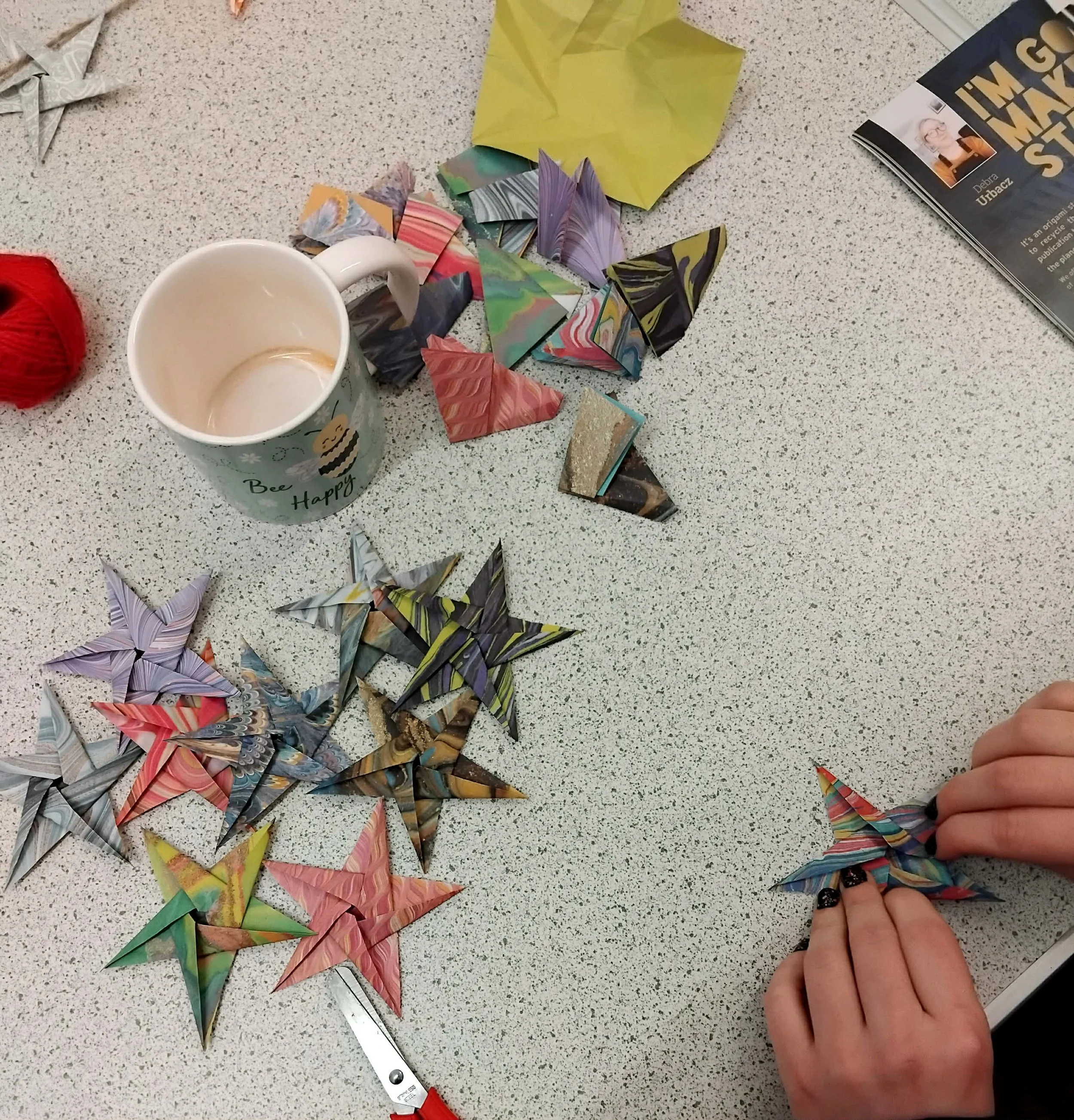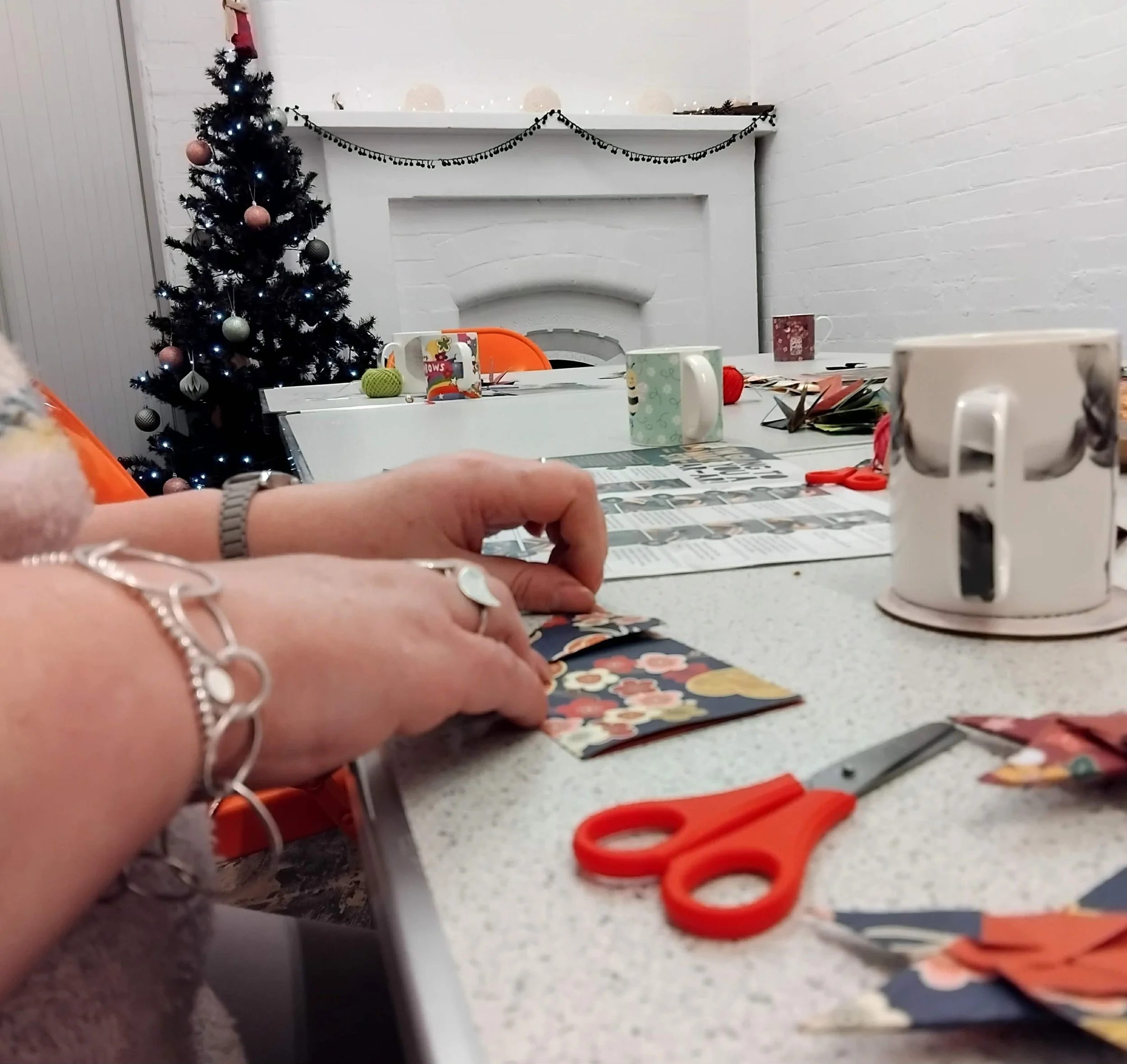 To celebrate, we invited all the people who donated to our spacehive crowdfunder, and supported in other ways over the year, to come and spend a creative afternoon with us. We planned an extended session for that Friday, and encouraged visitors to enjoy a cuppa and a mince pie with us, to enjoy the space they helped us to bring back to life.